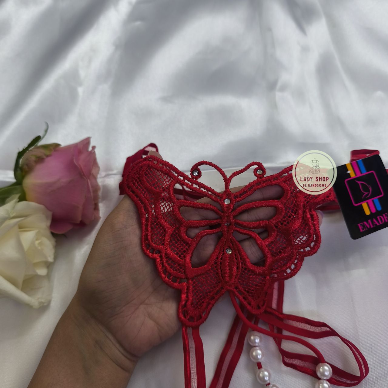 لباس زیر لامبادا مروارید دار (طرح پروانه)